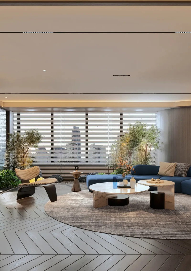 The leisure area incorporates high-end customized comfort elements, cleverly introducing landscapes into the interior and pursuing harmony between nature and gravity.